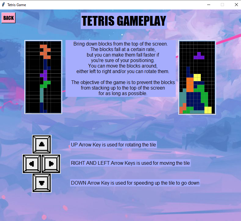 Tetris is a tile-matching puzzle video game that involves manipulating different geometric shapes, known as Tetriminos, as they descend from the top of the playing field. The goal is to arrange the Tetriminos in such a way that complete horizontal lines are formed. When a line is completed, it disappears, and the player earns points. As the game progresses, the Tetriminos fall at an increasing speed, requiring quick thinking and reflexes to prevent the stack of shapes from reaching the top of the playing field, which would result in the game ending. Tetris has become widely popular since its creation in 1984 and has been released on numerous platforms, making it one of the most recognizable and influential video games of all time.
